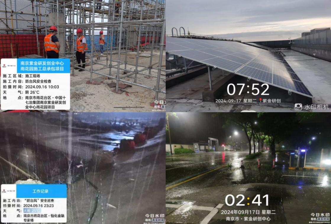 臺(tái)風(fēng)來(lái)臨前,園區(qū)和工地立即進(jìn)入"戰(zhàn)時(shí)狀態(tài)",成立應(yīng)急指揮小組,密切關(guān)注臺(tái)風(fēng)動(dòng)態(tài),組織專業(yè)團(tuán)隊(duì)對(duì)易積水區(qū)域、各類設(shè)施及排水系統(tǒng)進(jìn)行全面排查,儲(chǔ)備應(yīng)急物資,通過(guò)視頻監(jiān)控與現(xiàn)場(chǎng)巡查,進(jìn)行全方位、全天候值班值守工作。此外,施工現(xiàn)場(chǎng)全面停工,加固相關(guān)設(shè)施,組織安排18臺(tái)水泵,對(duì)現(xiàn)場(chǎng)基坑等位置進(jìn)行積水抽排。臺(tái)風(fēng)過(guò)后,園區(qū)及工地第一時(shí)間開(kāi)展復(fù)工安全檢查,對(duì)設(shè)施、設(shè)備穩(wěn)定性進(jìn)行確認(rèn)及修復(fù),清理積水與斷枝落葉,恢復(fù)園區(qū)運(yùn)營(yíng)環(huán)境,確保在建工程有序重啟。
