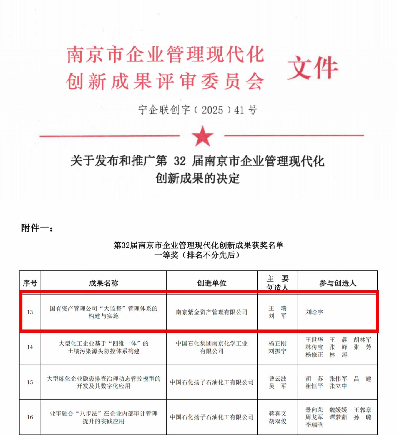 "大監(jiān)督"體系建設(shè)成效顯著!紫金資管榮獲南京市企業(yè)管理現(xiàn)代化創(chuàng)新成果一等獎(jiǎng)